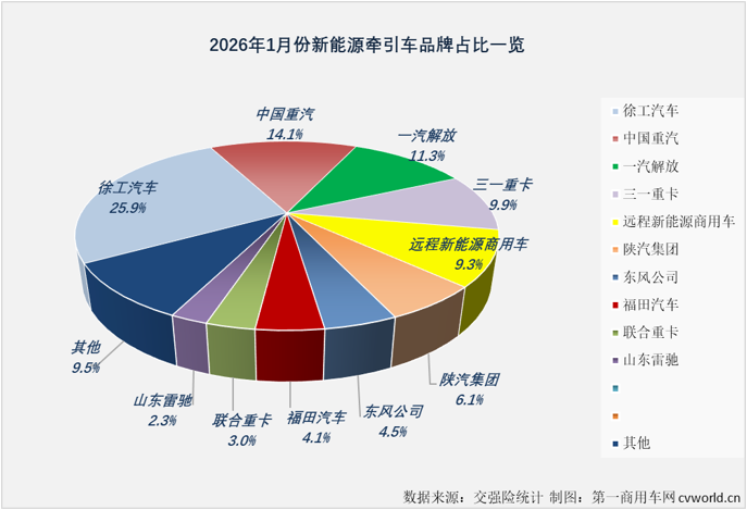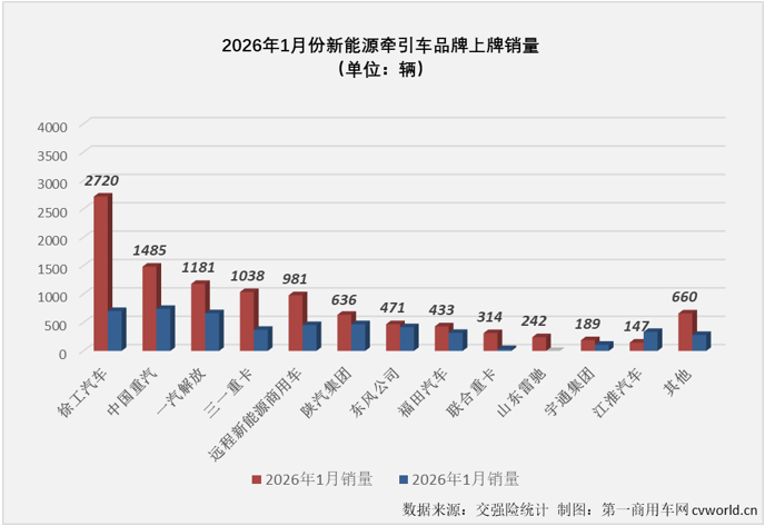 2026年1月新能源牵引车企业销量表(单位:辆)
